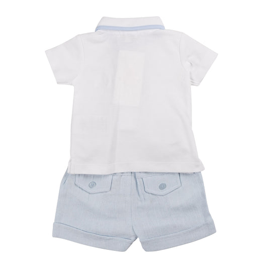 Mintini Polo Top & Short Set White/Blue MB6323A