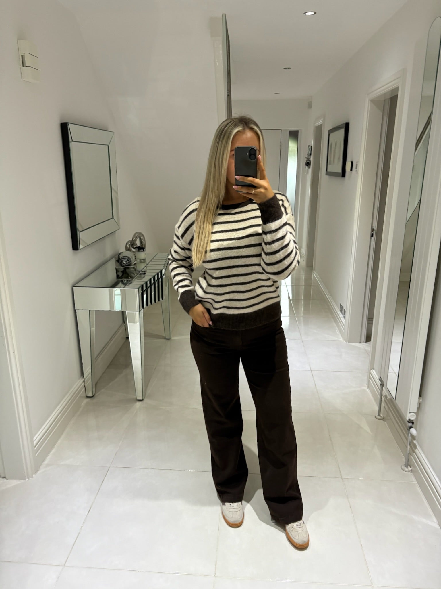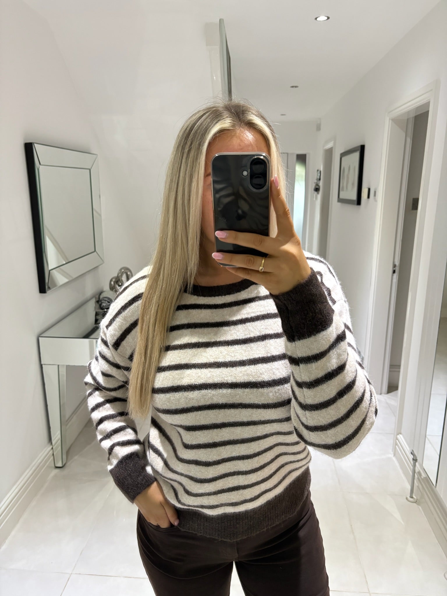 BELLA BOW BACK JUMPER IN CHOCOLATE STRIPE ONE SIZE 8-14