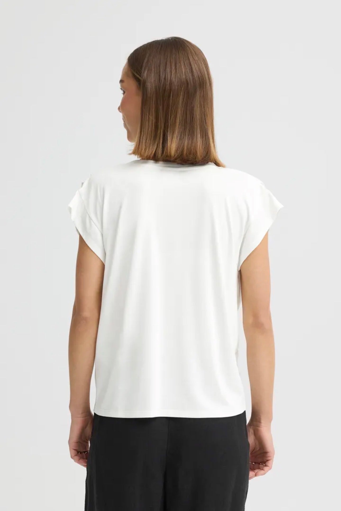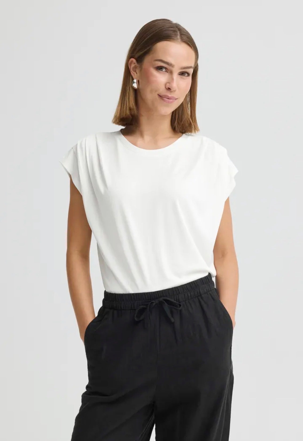 The ICHI Lisken Top 20114138 in Cloud Dancer features pin tuck details on the shoulder, enhancing both structure and visual interest. This design element not only adds sophistication but also allows for comfortable wear, making it suitable for various occasions. The top combines style with functionality, appealing to those seeking versatile wardrobe options.