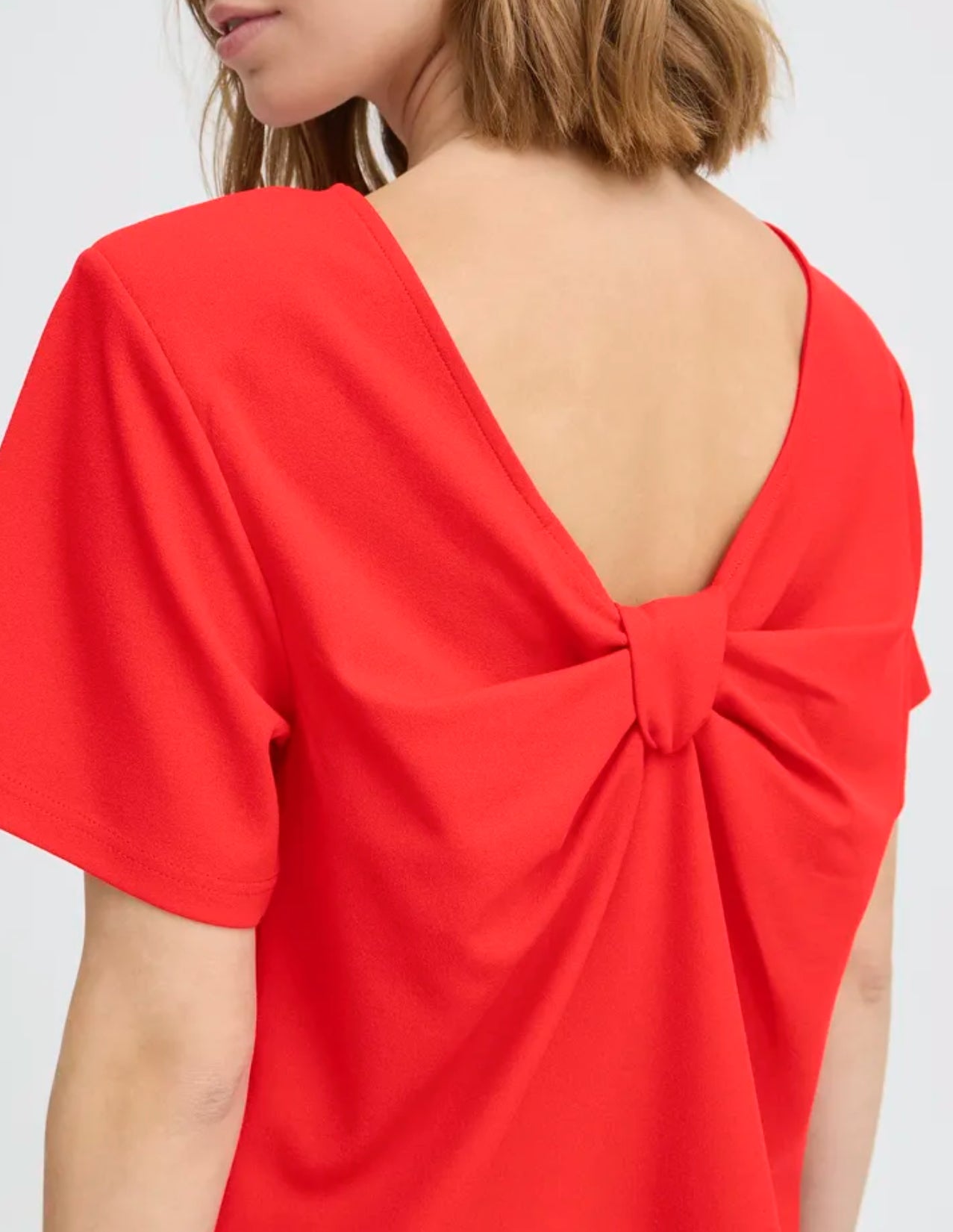 The ICHI MATINE SS Bow Top in Racing Red offers a refined blend of style and comfort. Crafted for a flattering fit, this short-sleeve top features a distinctive bow detail that adds a touch of sophistication to your wardrobe. Its vibrant red color enhances your presence, making it ideal for both casual and smart-casual occasions. Designed with quality materials, it ensures durability and ease of wear throughout the day. Perfect for those seeking a standout piece that combines expert tailoring with elegant simplicity.